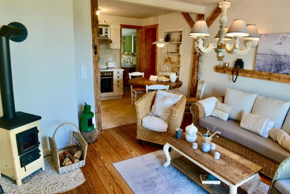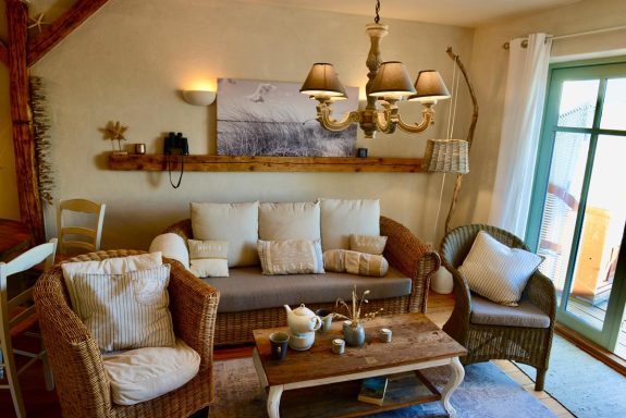 In unserer hellen, liebevoll eingerichteten Wohnung Westwind erwarten euch rund 70 m² Wohlfühlfläche – ideal für bis zu fünf Personen. Die Einrichtung im Vintage-Stil sorgt sofort für entspannte Urlaubsatmosphäre.